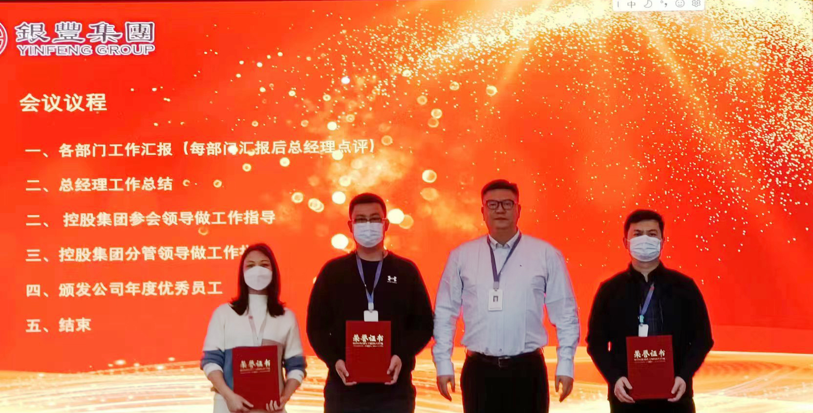 In order to praise the positive, recognize the advanced, this meeting on the 2022 annual three outstanding employees: Mi, Zhang, Wang for recognition, the left for the outstanding employees to issue certificates and take a group photo.
